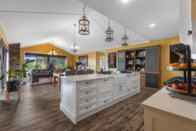 At the heart of the home is a beautifully designed kitchen that anchors the main living area. Stylish and practical, it features quality appliances, sleek cabinetry, two dishwashers for added convenience, and a generous walk in scullery that offers additional preparation space and storage. Conveniently, the scullery is accessed directly from the internal triple car garage, making day to day living incredibly efficient. Sunlight fills the living areas while the lake provides a calming backdrop, setting the tone for a tranquil and elevated lifestyle.